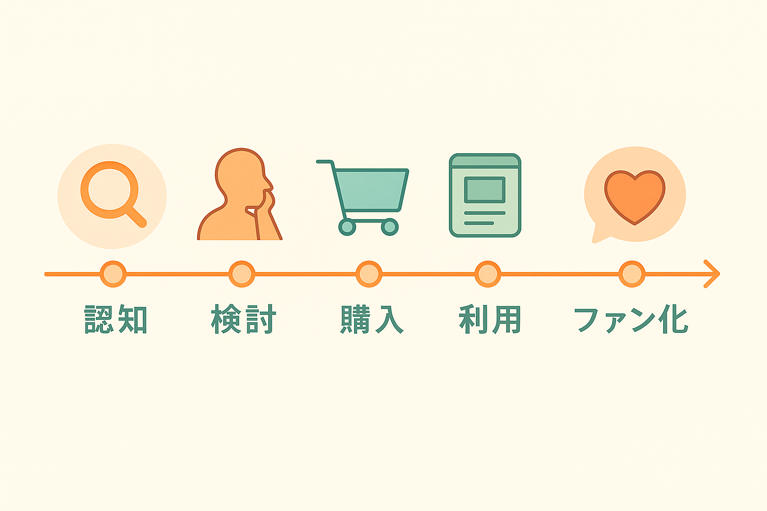 idea Lane の 消費行動ファネルの解説記事 に記載したような、 AIDMA や 5A など既存のフレームワークを参考にして考えるのも一つの方法です。